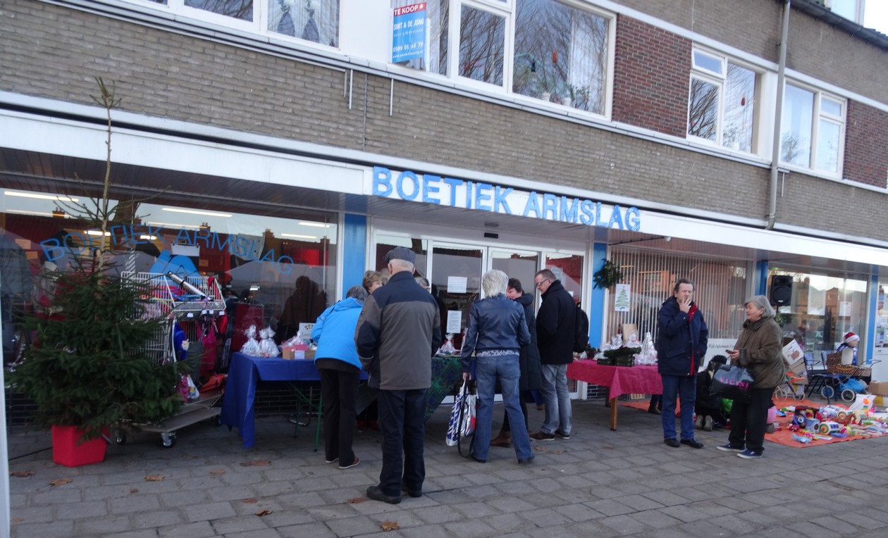 Zaterdagmiddag was er een Kerstmarkt aan de Nederlandlaan, de markt begon om 13.00 uur. Buurtcentrum Maarsstee stond er met een rommelmarkt, kerstbomen, kniepertjes, snert, broodjes met knakworst en een verloting en tevens een echte Kerstman. Wij stonden voor onze Boetiek met leuke cadeaus door onze vrijwilligers gemaakt, van gekregen spullen uit onze Boetiek en heel leuk ingepakt, voor weinig geld een leuk Kerstcadeau. Er waren ook veel mensen, die onze Boetiek niet kenden, we hebben nieuwe klanten ingeschreven. Het was een gezellige drukte en het was prachtig weer. Mocht u nog Kerstversiering of Kerstcadeaus of kleren voor de Kerst zoeken kom even langs. Boetiek Armslag is een bezoek waard. We zijn elke dag open s’ morgens van 9.00 uur tot 11.00 uur en s ’middags van 14.00 tot 16.00 uur alleen de maandag- zaterdagmorgen niet.