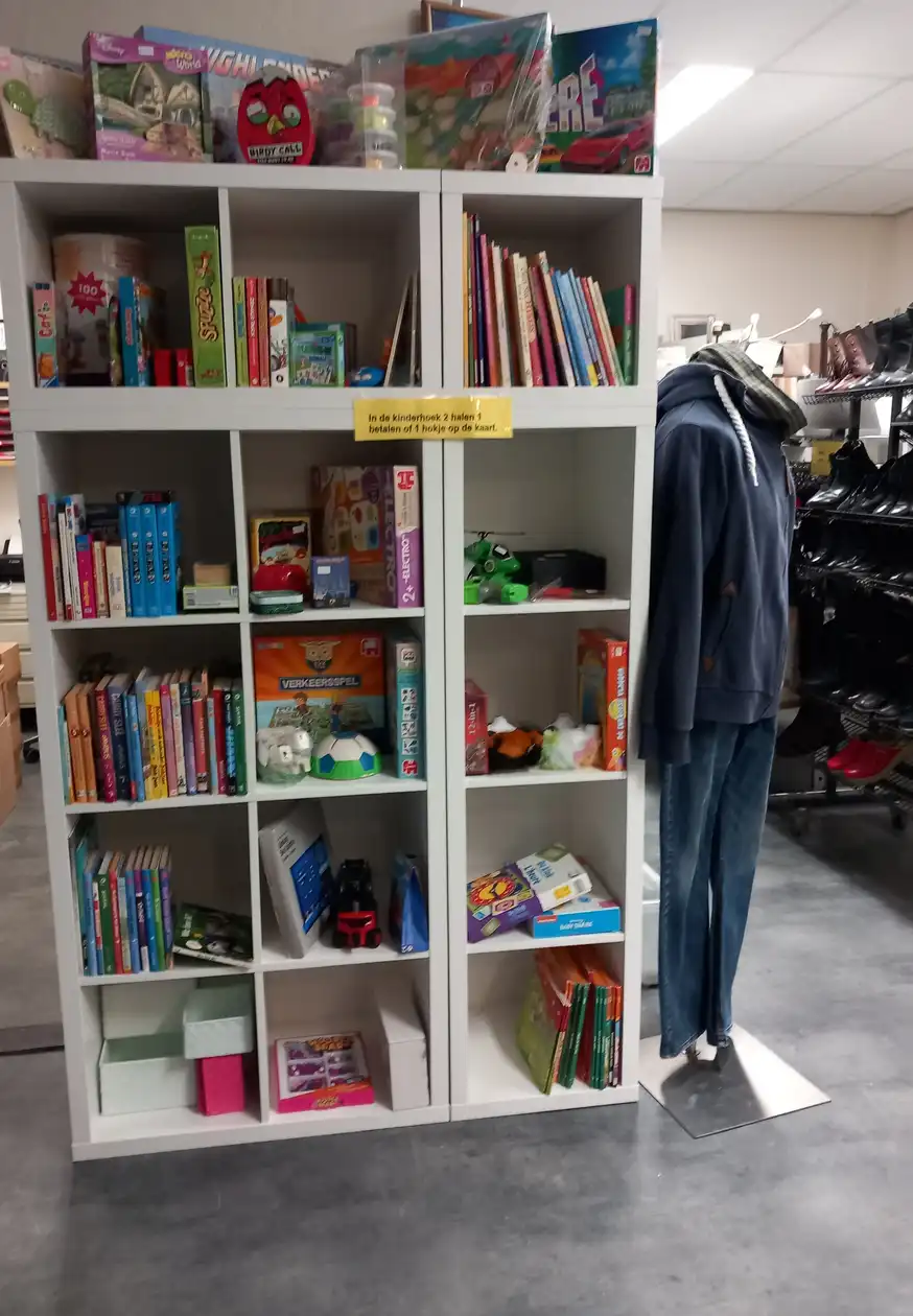 De aanbieding is speelgoed en beddengoed 2 halen 1 betalen. Dus profiteer van de aanbieding.